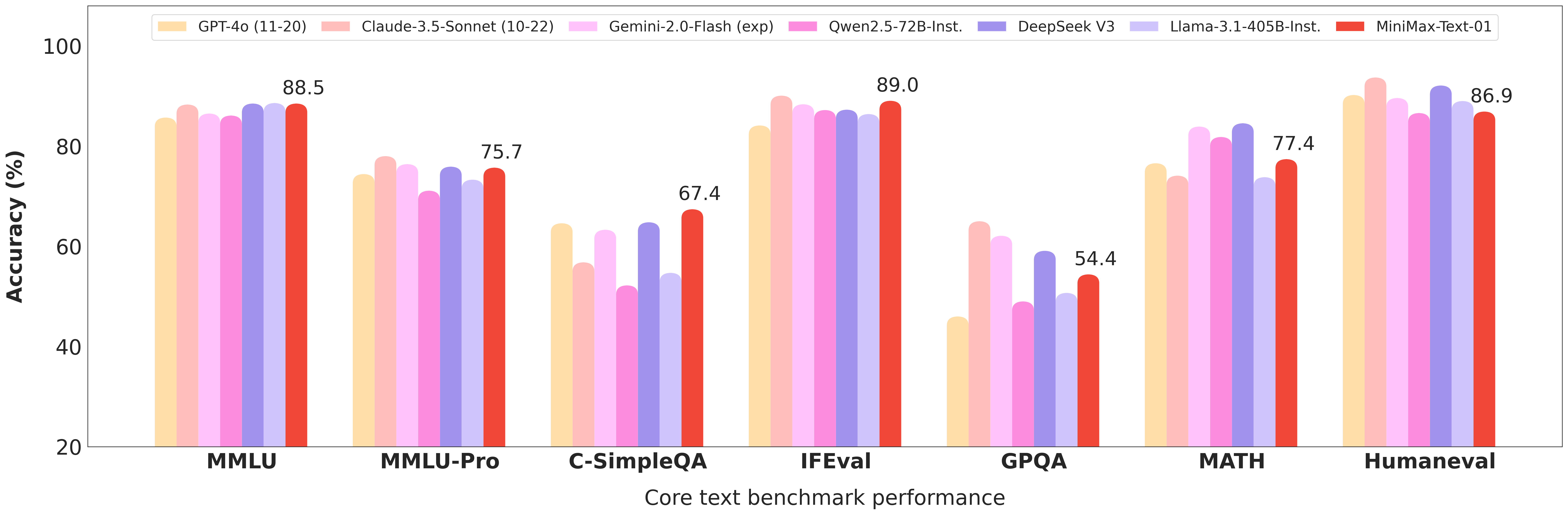 | MiniMax-Text-01 | 33.65 | 57.10 | 58.00 | 23.45 | 24.35 |