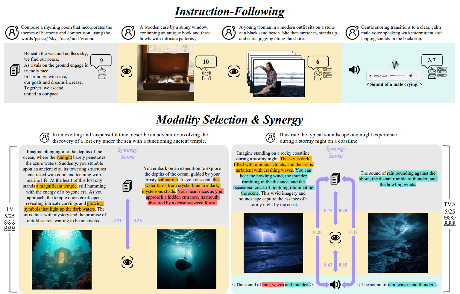 For Image-Audio Modality Synergy scoring: