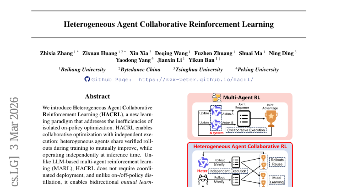 Heterogeneous Agent Collaborative Reinforcement Learning upvoted a paper 9 days ago