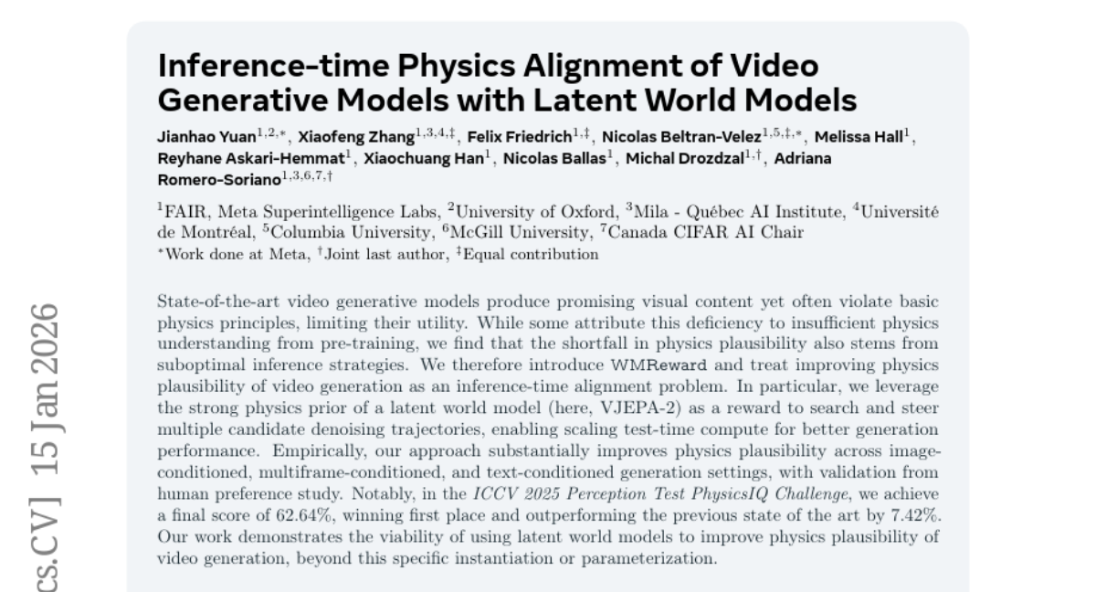Inference-time Physics Alignment of Video Generative Models with Latent World Models