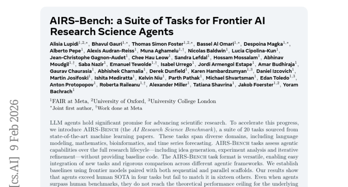 AIRS-Bench: a Suite of Tasks for Frontier AI Research Science Agents