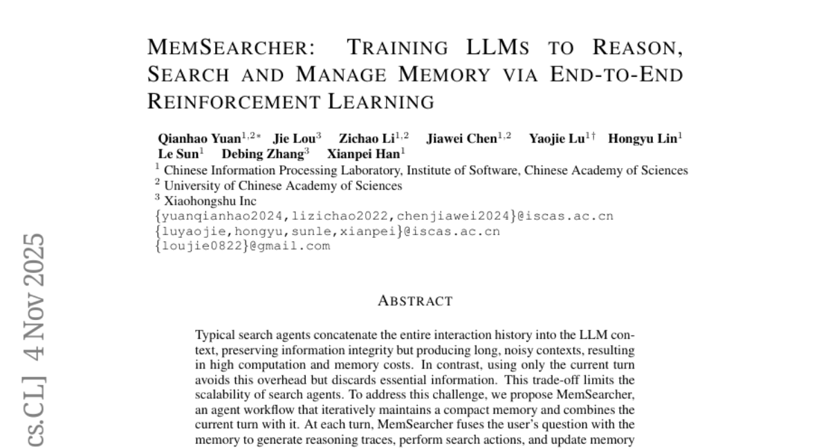 MemSearcher: Training LLMs to Reason, Search and Manage Memory via End-to-End Reinforcement Learning