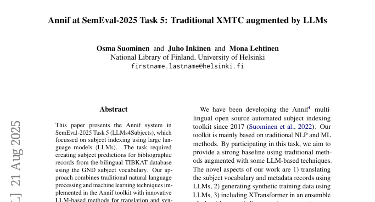 • AI-Powered Subject Indexing in the Archives – Piloting Finto AI at the Finnish Literature Society, Milla Eräsaari and Teemu Hirvonen