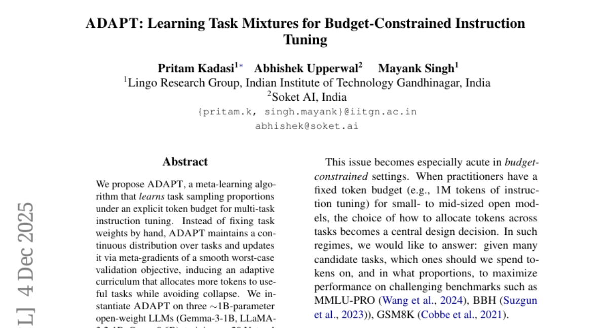 ADAPT: Learning Task Mixtures for Budget-Constrained Instruction Tuning
