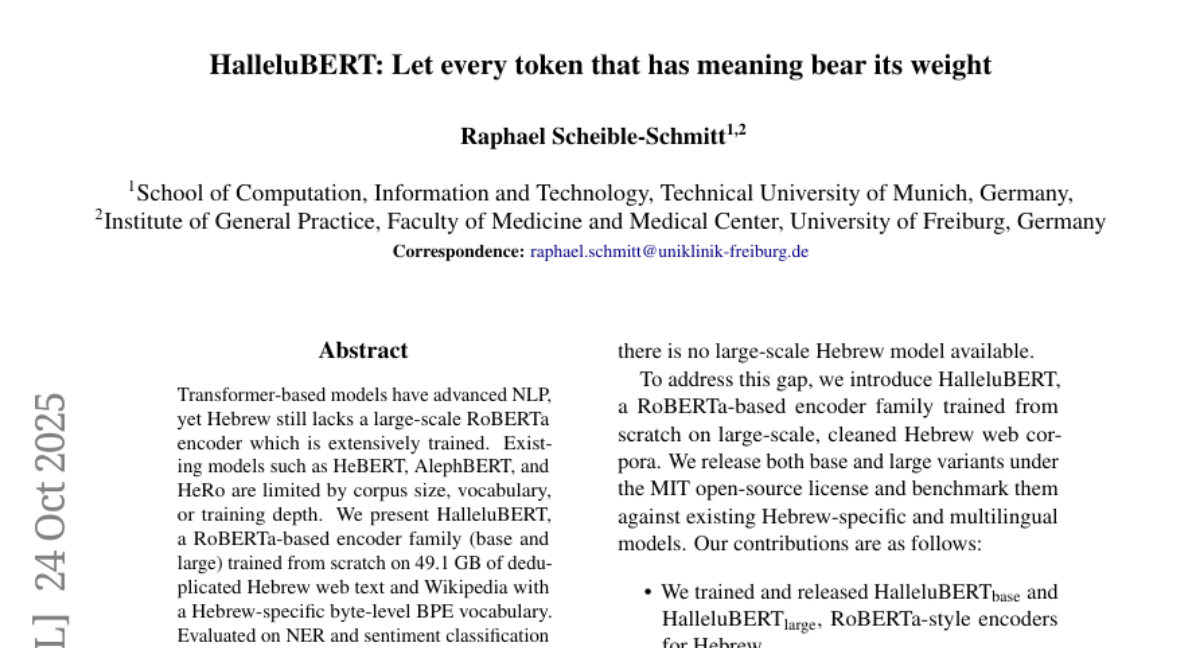 HalleluBERT: Let every token that has meaning bear its weight authored